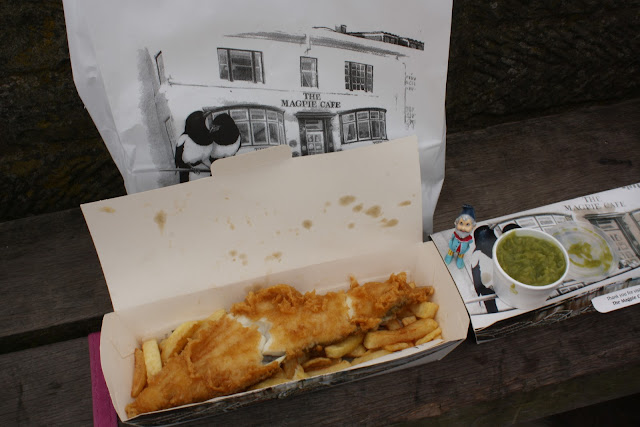 Along with Jill and Tony and our 3 Bearded Collies Roamy head up north to Whitby in Yorkshire...Whitby is where Bram Stoker stayed when he wrote 'Dracula' and the abbey mentioned in the book is still there .We made sure Roamy had Garlic in all his meals to ward off any sharp toothed people ! He also got to sample traditional British Fish and Chips and Mushy peas, finished with Whitby's Famous Fudge ..careful you don't put too much weight on for the trip home Roamy !!! He even got to ride on a steam train too !