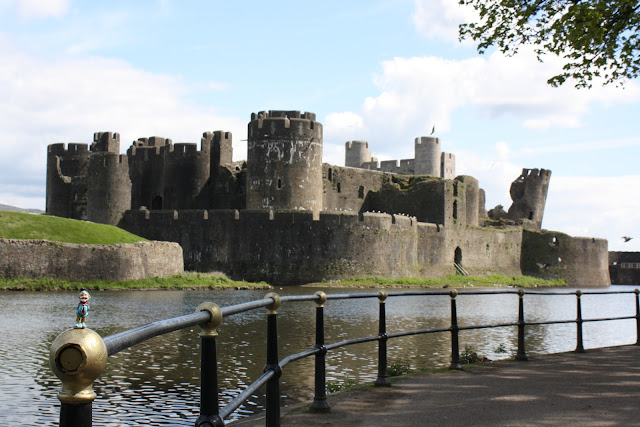 In April Roamy had a wonderful time with Jill & Tony in Caerphilly ,South Wales - Land of Dragons, Castles and Song ! Jill & Tony have a trio of beautiful dogs, too..... Roamy enjoyed being pictured with Daffodils, Wales' National Flower and around Caerphilly Castle ( 2nd biggest in the UK after Windsor where the Queen lives ) and it was built in 1271 .After visiting the castle with us we needed a break and Roamy got to sample Welsh Cakes , delicious cakes made with raisins and served warm off the griddle !