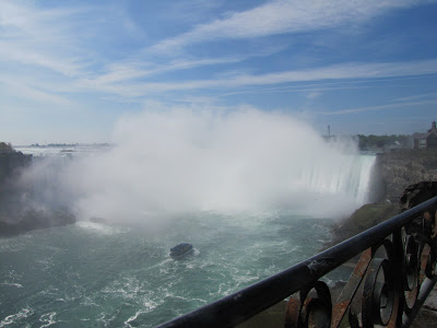 I think Roamy really enjoyed being in Niagara Falls, Ontario, this past weekend. It was a long weekend here in Canada, celebrating Queen Victoria Day on Monday. Here is Roamy standing in front of the American Falls....remember, you can click on the pictures to enlarge.
